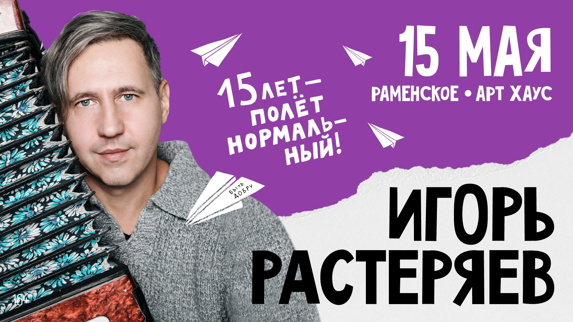 Игорь Растеряев выступит с большим юбилейным концертом «15 лет – полёт нормальный» в подмосковном Раменском! Ждём всех 15 мая 2026 года в клубе Арт Хаус!